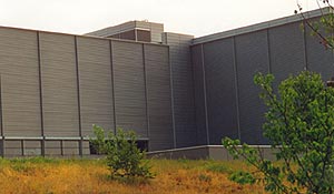 Die Ostfassade ist mit Hunter-Douglas Paneelen bekleidet.